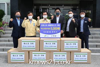 ▲ [사진제공 = 여주시]지산그룹이 지난 5월28일 코로나19 예방 및 확산 방지를 위해 마스크 5,000매를 여주시청에 기탁했다.