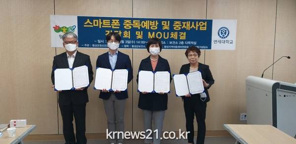 횡성군정신건강복지센터(원주세브란스기독병원 위탁/센터장: 김민혁)는 2020년 횡성군수 공약사업과 관련하여 ‘아동청소년 스마트폰 중독예방 및 중재사업’진행을 위한 유관기관과의 간담회를 갖고 MOU를 체결했다.