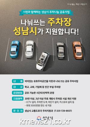 ▲ [사진=홍보포스터]성남시는 지역 내 주차난 해소를 위해 민간 부설주차장을 대상으로 ‘주차나눔 공유사업’을 편다.