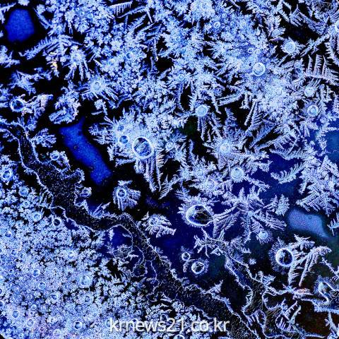 ▲ [하얀나무 제공]해마다 겨울이면 영하 10도 이하의 기온에서 소리 없이 피어나 바람처럼 사라지는 화원 유리에 맺힌 성에를 추상의 느낌으로 담는 사진가가 있다.