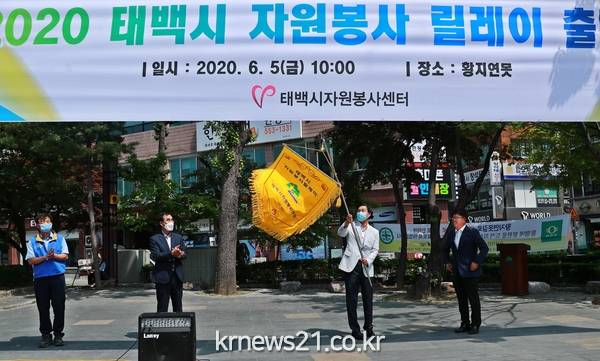 태백시 자원봉사센터는 5일 오전 10시 황지연못 문화광장에서 2020 자원봉사 릴레이 출발식을 개최 했다.