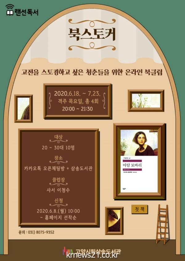 ‘북스토커’의 클럽장 이청수 사서는 고전을 좋아해서 첫 책으로 ‘마담 보바리’를 선정했다. 북스토커는 6월 18일부터 격주로 네 번의 모임을 갖는다. 각 북클럽은 세 번의 온라인 모임을 가진 후 삼송도서관에서 오프모임으로 마무리 할 예정이다.