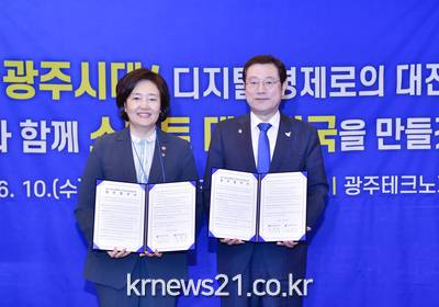 광주시는 10일 라마다플라자 광주호텔에서 중소벤처기업부와 ‘중소기업과 함께 하는 인공지능 확산을 위한 업무협약’을 체결했다. 업무협약을 계기로 양 기관은 ▲중소기업과 함께 인공지능 기술 보급·확산 ▲스마트공장 인공지능 모델 개발 및 인재육성 ▲중소기업 맞춤형 인공지능 스타트업 육성 ▲중소기업 인공지능 투자펀드 조성 지원 ▲중소기업 인공지능 확산 등에 공동으로 나선다.