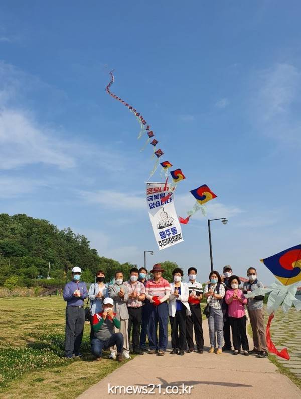 고양시 덕양구 행주동 주민자치위원회(위원장 김정임)는 지난 9일 행주산성 역사공원에서 코로나19 위기극복을 기원하는 연날리기 행사를 진행했다.