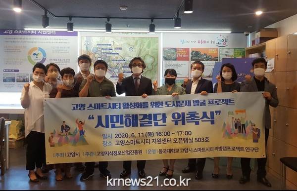 고양지식정보산업진흥원(이하 진흥원)은 11일 고양 스마트시티 지원센터에서 IT 기술 기반으로 도시문제 발굴 및 해결하기 위해 시민해결단 위촉식을 진행하였다.