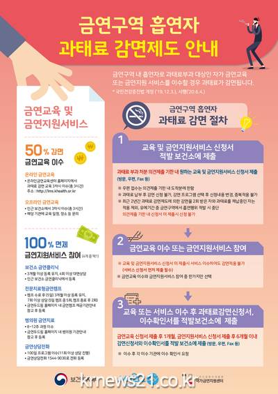 먼저 금연교육은 온라인금연교육센터 홈페이지(http://lms.khealth.or.kr)에서 과태료 감면 교육을 신청하고 이수할 수 있다.