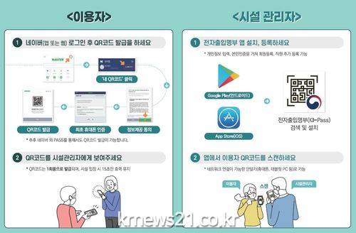 한편, QR코드 인식을 통해 수집된 개인별 정보는 네이버 등 QR코드 발급회사의 서버에 저장‧관리되고 시설방문 정보는 사회보장정보원 서버에 암호화되어 분산 보관되며 4주 후 자동 폐기된다.
