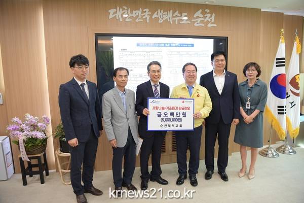 순천시는 지난 15일 순천북부교회(담임목사 김동문)에서 코로나19로 어려움을 겪고 있는 이웃들에게 사용해 달라며 성금 500만원을 기탁해 왔다고 밝혔다.
