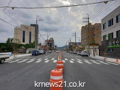 ▲ [사진제공 = 영천시]영천시(시장 최기문)는 이달 22일(월) 10시부터 영천역~버스터미널 간 도로확장공사 중 1단계 구간인 영천역에서 금노사거리 간 520m 구간의 공사가 마무리 됨에 따라 우선 개통 한다고 밝혔다.