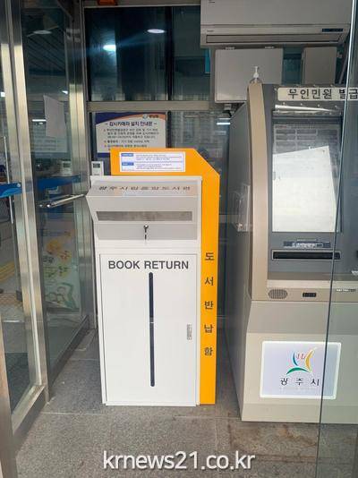 ▲ [사진제공 = 광주시]광주시립중앙도서관은 대출이용률이 많은 지역을 중심으로 행정복지센터 6개소를 선정, 도서 무인반납함을 설치하고 서비스를 시행한다고 17일 밝혔다.