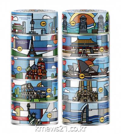 ▲ [이미지제공 = 동원F&B]동원F&B(대표이사 김재옥)가 동원참치에 세계 각국의 랜드마크를 담은 ‘동원참치 아트캔’을 출시했다.