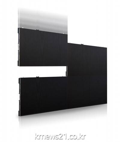 LG LED 사이니지 신제품은 가로 600mm, 세로 337.5mm, 두께 44.9mm 크기의 LED 캐비닛(LED 소자가 박힌 LED 사이니지의 기본 구성단위)을 레고 블록처럼 간편하게 이어 붙일 수 있어 대강당, 로비, 회의실 등 다양한 상업용 공간에 맞춰 설치할 수 있다.