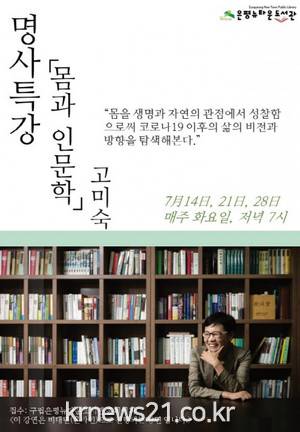 ▲ [사진=홍보포스터]구립은평뉴타운도서관(관장 박종범)은 작가 겸 고전평론가로 잘 알려진 고미숙 작가를 초청해 7월 14일부터 28일까지 매주 화요일 저녁 7시 명사특강 <고미숙의 몸과 인문학>을 운영한다고 밝혔다.