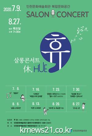 ▲ [사진=홍보포스터]코로나19로 지친 시민들과 위축된 문화예술계 활성화를 위해 문화예술회관이 새롭게 선보이는 <살롱콘서트 휴(休, HUE)>의 1, 2회 차 공연이 수도권 지역의 강화된 방역지침에 따라 온라인 녹화중계로 진행된다.
