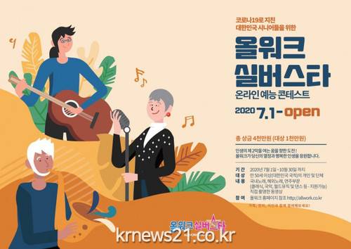 ▲ [사진=홍보포스터]40세 이상의 무료 구인구직사이트를 운영하는 올워크(대표이사 김봉갑)가 7월 1일부터 10월 30일까지 ‘올워크실버스타’ 온라인 예능 콘테스트 예선 참가자 신청을 받는다.