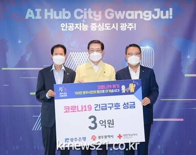 ▲ [사진제공 = 광주광역시]광주광역시는 광주은행이 코로나19 재확산으로 어려움을 겪고 있는 광주시민을 지원하기 위해 6일 3억원을 기탁했다고 밝혔다.