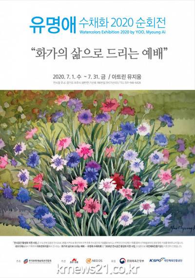 네오디에스가 기획하고 아트린뮤지움에서 전시되는 “화가의 삶으로 드리는 예배” - 유명애 수채화 순회전 2020은 ‘2020년 전시공간 활성화 지원 사업’의 일환으로 국민체육진흥기금을 지원받아 진행된다. 이번 전시에는 유명애 작가의 19980년대부터 2020년까지의 수채화 50점이 출품된다.