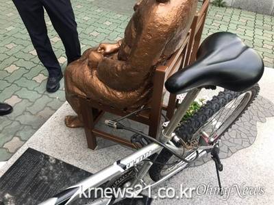 소녀상을지키는부산시민행동에 따르면 8일 오후 5시 부산시 동구 일본영사관 앞 평화의 소녀상에 20대 남성이 자전거를 자물쇠(열쇠)로 묶고 달아났다.
