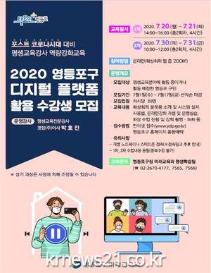 ▲ [사진=홍보포스터]영등포구(구청장 채현일)는 코로나19의 장기화로 어려움을 겪고 있는 지역 내 평생교육 강사들을 위해 비대면 방식의 디지털 플랫폼 활용교육을 7월 20일~21일, 30일~31일 총 2회에 걸쳐 실시한다고 밝혔다.
