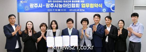 광주시는 지난 13일 시청 접견실에서 한국농아인협회 경기도협회 광주시지회와 청각·언어 장애인의 평생학습 활성화를 위한 업무협약을 체결했다.