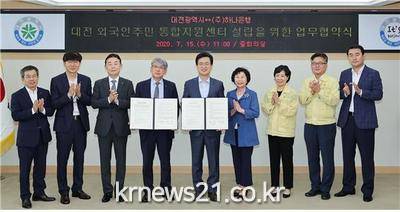 이날 허태정 시장은 “지역자원의 효율적 연계를 통한 지역주민과 외국인주민들이 함께할 수 있는 복합 커뮤니티 공간 조성에 뜻을 함께 해준 하나은행 측에 감사드린다”며 “이번 협약은 외국인 주민 삶의 질을 끌어올리기 위한 민과 관의 협업으로서 모범적인 사례가 될 것이며, 큰 성과를 거둘 수 있도록 대전시와 하나은행이 함께 노력하자”고 말했다.