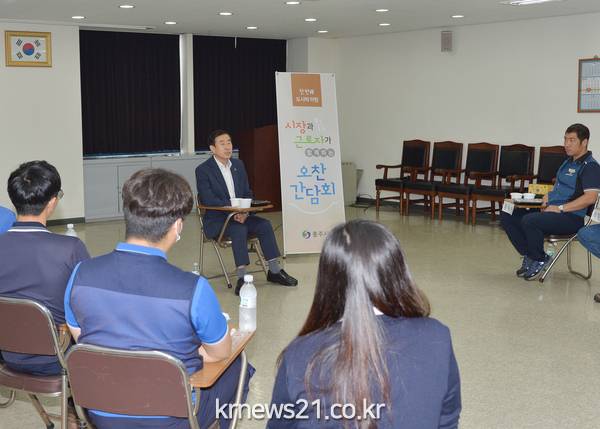 조길형 충주시장이 ‘도시락 미팅’을 통해 지역 근로자들과 소통의 장을 열고 있다.