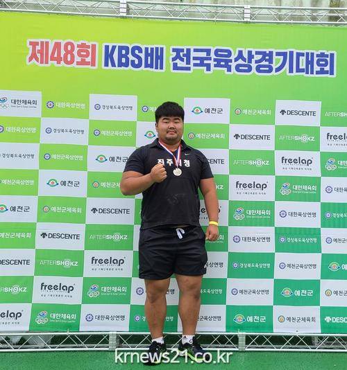 지난 24일부터 28일까지 5일간, 경북 예천군 예천공설운동장에서 열린 제48회 KBS배 전국육상경기대회에서 진주시청 육상부 진명우선수가 포환던지기 종목에서 은메달을 획득해 육상부 창단 이후 첫 메달을 안겨주었다.