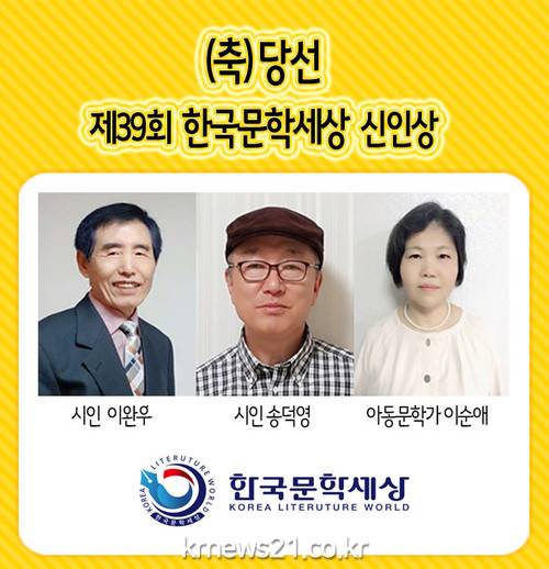 ▲ [사진제공 = 한국문학세상]한국문학세상(회장 김영일)은 6월 1일부터 한 달간 국민을 대상으로 <제39회 한국문학세상 신인상> 작품을 인터넷으로 공모해 3명을 당선자로 선정했다.