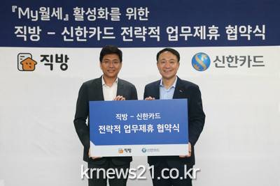 양사는 문동권 신한카드 경영기획그룹장과 안성우 직방 대표 등 양사 관계자가 참석한 가운데 서울 을지로 신한카드 본사에서 제휴 협약식을 열었다.