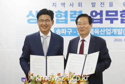 ▲ [사진제공 = 송파구]송파구(구청장 박성수)가 한국체육산업개발(주)(대표이사 김사엽, 이하 체육산업개발)과 업무협약을 체결하고 문화체육도시로 발전하기 위한 상호협력에 나선다.