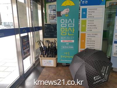 ▲ [사진제공 = 여주시]여주시(시장 이항진)는 장마 이후 시작될 폭염 대비를 위해 시청 및 각 읍·면·동 주민센터에 ‘양심양산’을 비치해 시민들이 자유롭게 사용하고 반납하도록 하는 ‘양심양산 대여서비스’를 실시한다고 밝혔다.