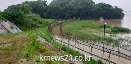 김포시 운양동 감바위 군초소가 물에잠겨 이동이불가능한상황이다.
