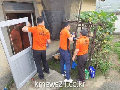 ▲ [사진제공 = 양평군]남녀의용소방대연합회(남성회장 김재선, 여성회장 채옥순)는 지난 6일, 회원 10여명과 함께 용문면에 거주하는 주거환경이 취약한 저소득층 어르신 가정을 방문해 도배, 장판 및 현관문 교체 등 주거환경 개선을 위한 희망릴레이 집수리 봉사로 값진 구슬땀을 흘렸다.