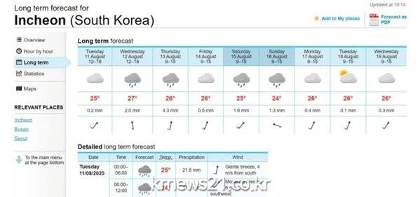 ▲ [사진출처 = 노르웨이 기상청 홈페이지 캡처]역대 최장기간 장마를 기록중인 올 여름, 한국 기상청의 예보 정확성에 대한 불신이 커지면서 국내 날씨를 해외 기상예보 사이트에서 확인하는 누리꾼들이 늘고 있다.
