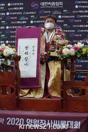 ▲ [사진제공 = 양평군]지난 13일, 2020 영월장사씨름대회에서 양평군청 김보경이 통산 5번째 한라장사에 등극했다.