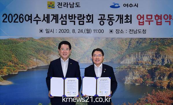 시는 24일 전라남도와 전남도청 VIP실에서 2026여수세계섬박람회의 성공적 추진 을 위한 공동개최 업무협약을 체결했다고 밝혔다.