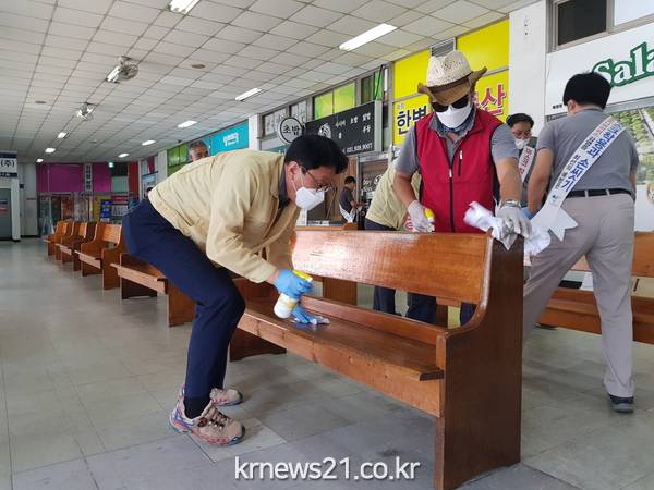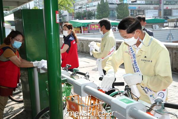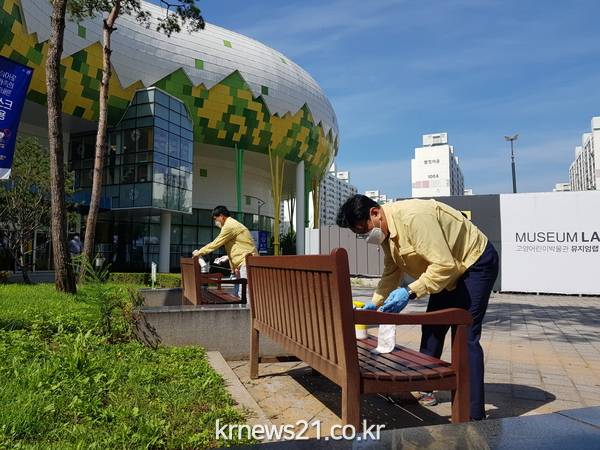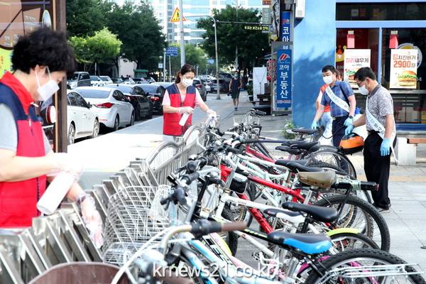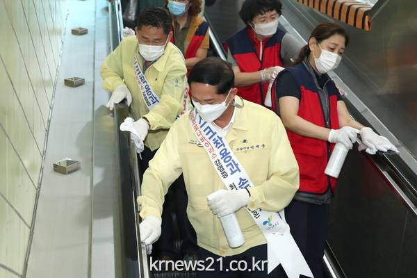 방역 참여자들은 고양시 39개 동 관할 버스정류장, 공원, 개방형화장실 등 다중이용시설 750곳에 대해 마스크를 착용하고 방역수칙을 준수하며 실시했다.