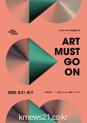 ▲ [사진=홍보포스터]서울문화재단(대표이사 김종휘)은 온라인 미디어 예술활동 지원사업인 <아트 머스트 고 온(ART MUST GO ON)>에 참여할 예술인과 크리에이터를 8월 31일(월)부터 9월 11일(금)까지 공모한다. 총 200여팀을 선정하며 지원 규모는 30억원이다.