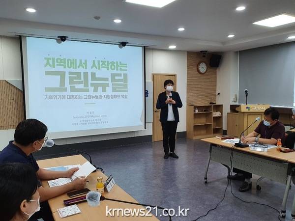 특히, 정부의 그린뉴딜 정책 이행과 관련,‘지역에서 시작하는 그린뉴딜’을 주제로 이유진 녹색전환연구소 연구원의 특강을 진행했다. 이유진 연구원은 강의에서 기후위기의 위험성과 탄소중립(Net-Zero) 개념, 그리고 국가와 각 지자체의 그린뉴딜정책을 통해 고양시 그린뉴딜이 가야할 방향을 제시했다.