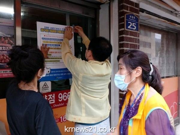 이를 위해 시‧구‧동 총 48개 부서의 인력 지원과 협조 하에 점검반을 편성해 관내 ▲고위험시설(유흥주점) 114개소 ▲일반음식점 2,663개소 ▲휴게음식점 1,034개소 ▲제과점 147개소를 대상으로 방역수칙 준수 여부 점검과 함께 안내 포스터를 배부하는 등 강화된 사회적 거리두기 지침에 적극 동참해줄 것을 당부했다.