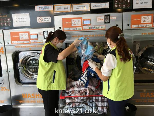 백석2동 맞춤형복지팀은 가능한 대민접촉을 피하기 위해 대상자의 가정을 직접 방문해 문 밖으로 내다 놓은 세탁물을 수거했고 세탁과 건조과정을 거친 뒤 다시 각 가정으로 전달했다.