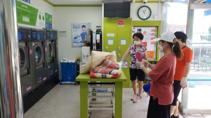 이날 이불세탁 봉사에서는 긴 장마와 높은 습도로 눅눅하고 냄새나는 이불을 사용하면서도 거동불편으로 세탁이 힘든 독거노인과 장애인 가정을 봉사자들이 일일이 방문해 비대면으로 이불을 수거하고, 코인 빨래방에서 세탁과 건조를 실시해 다시 가정으로 전달했다.