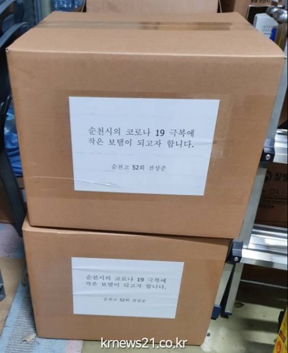 순천시(시장 허석)에 코로나19 극복을 위한 개인, 기업체 등에서 방역물품 전달이 연일 계속되고 있다.