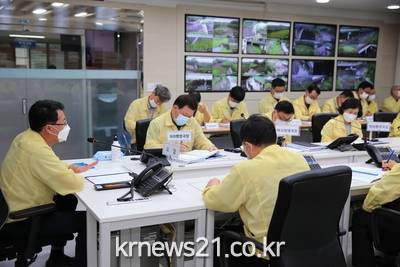 ▲ [사진제공 = 제주시]제주시에서는 제10호 태풍‘하이선’북상으로 인한 피해를 최소화하기 위해 9월 6일 12시 안동우 시장 주재로 상황 판단회의를 개최하여 태풍 대비 사전 조치사항을 점검하였다.