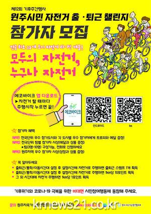 ▲ [사진=홍보포스터]원주시와 원주지속가능발전협의회는 제12회 기후주간 행사의 하나인 「STOP 1.5℃ 기후 위기 시민행동 자전거 출퇴근 챌린지 ‘모두의 자전거, 누구나 자전거’」에 함께할 참가자를 모집한다.
