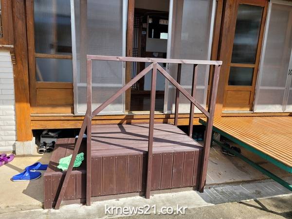 송광면에 거주하는 70대 어르신은 “수십년 파킨슨 병을 앓다보니 다리에 힘이 없어 마루에서 넘어져 다치곤 하였는데 토방에 계단과 난간대를 설치해줘서 안전하게 오르내리게 되었다”며 감사의 마음을 전했다.