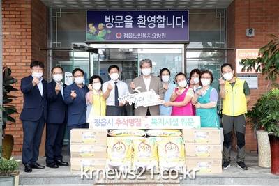 관련해 유진섭 시장은 17일 정읍노인복지요양원과 은혜의 집을 방문해 백미와 물티슈 등 위문품을 전달하고 따듯한 정을 나눴다.