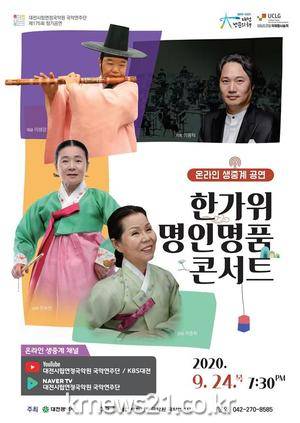 ▲ [사진=홍보포스터]대전시립연정국악원 국악연주단이 오는 24일 오후 7시 30분 제175회 정기공연 ‘한가위 명인명품 콘서트’를 온라인으로 생중계한다.