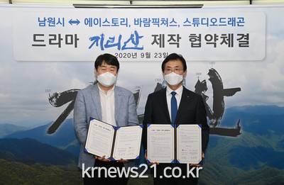 시는 이날 이환주 남원시장과 이상백 ㈜에이스토리 대표, 최호성 바람픽쳐스 본부장 등 최소한의 관계자만 참석한 가운데 드라마 제작과 관련 상호간의 발전을 위해 업무협약을 체결하고, 협약식을 가졌다. 2021년 tvN에서 방영될 드라마 『지리산』은 광활한 지리산의 비경을 배경으로 산을 오르는 사람들의 이야기를 담아낸 미스터리물이다.