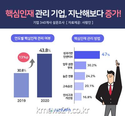 코로나19 사태로 많은 기업들이 어려움을 겪는 가운데, 위기를 타개하기 위해 핵심인재를 관리하는 기업이 늘어난 것으로 나타났다.